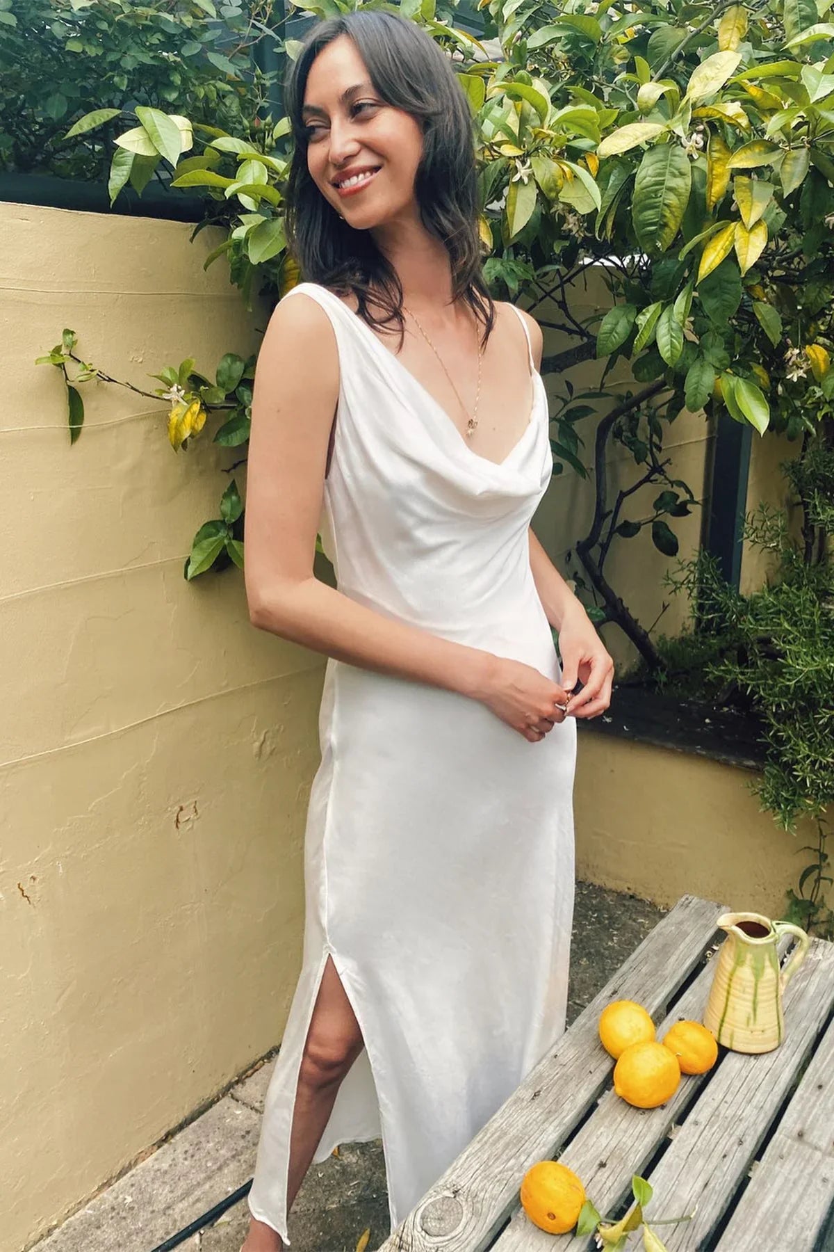 Formal Wear Dresses/Asymmetrical Cowl Neck Ivory Satin Bridesmaid Dress