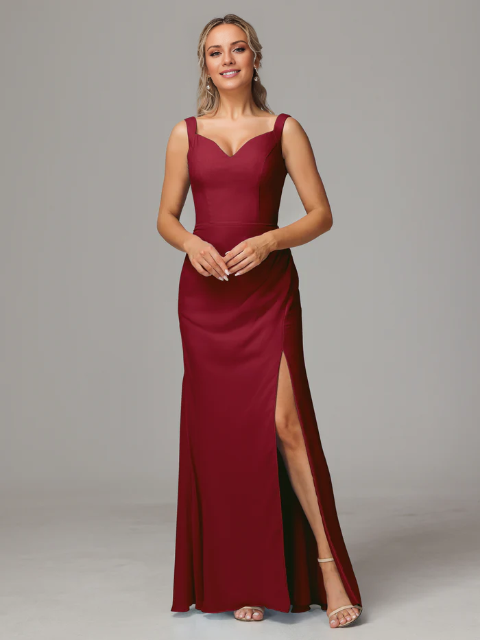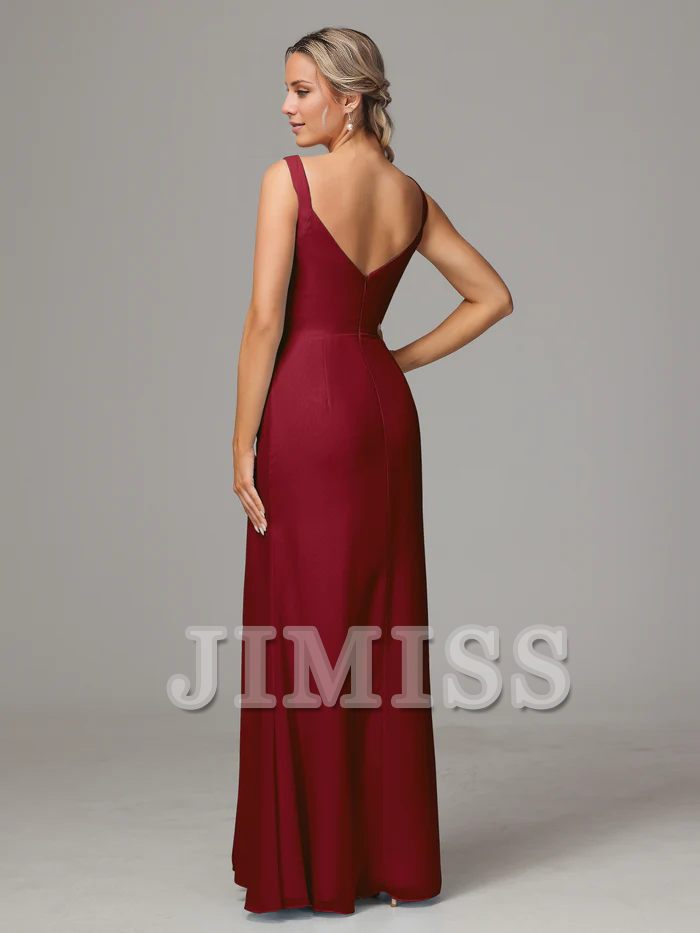 V-neck slit sleeveless off shoulder chiffon bridesmaid dress